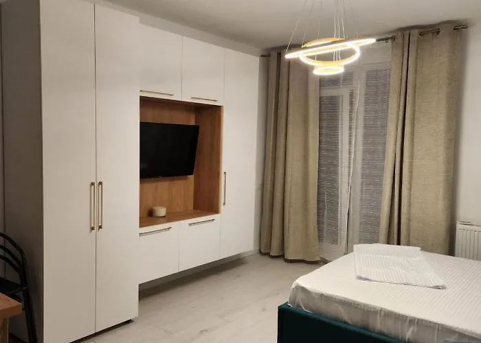 Obiekt noclegowy wyposażony jest w wyposażoną kuchnię z czajnikami elektrycznymi, lodówką i przyborami kuchennymi. Najbliższe lotnisko to lotnisko Konstanca Kogalnice, 30 km od apartamentu Mamaia Nord -Navodari Chic w Năvodari.